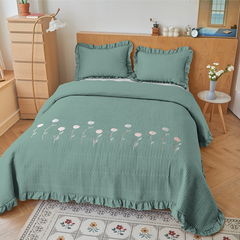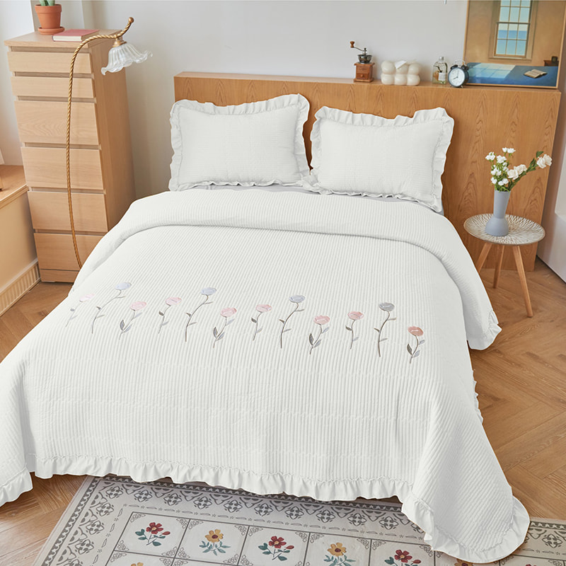 1. Exquise vakmanschap en high-end textuur: dit Gewatteerde geborduurd beddeksel Gebruikt voortreffelijke borduurtechnologie om een driedimensionaal en delicaat patroon te creëren, dat niet alleen het visuele en tactiele kwaliteit verbetert, maar het product ook een unieke artistieke charme geeft. Het gebruik van stoffen met hoge dichtheid verbetert niet alleen de rimpelweerstand en slijtvastheid van het product, maar houdt het ook plat na het wassen van machine, gemakkelijk te verzorgen en eenvoudig te onderhouden. Nantong Noble International Trading Co., Ltd. is zich er terdege van bewust dat de vraag van klanten naar textielproducten thuis niet beperkt is tot schoonheid, maar richt zich ook op de bruikbaarheid en duurzaamheid ervan. De combinatie van stof- en borduurtechnologie met hoge dichtheid maakt het product niet alleen duurzaam en langdurig, maar heeft ook een uitstekende kleurnelheid, wasbaar en droogbaar, heldere en blijvende kleur, vochtbestendig en niet gemakkelijk om stof te absorberen, geschikt voor verschillende omgevingen.